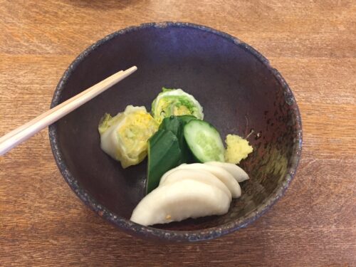 ビールを頼んで、漬物がでてきて